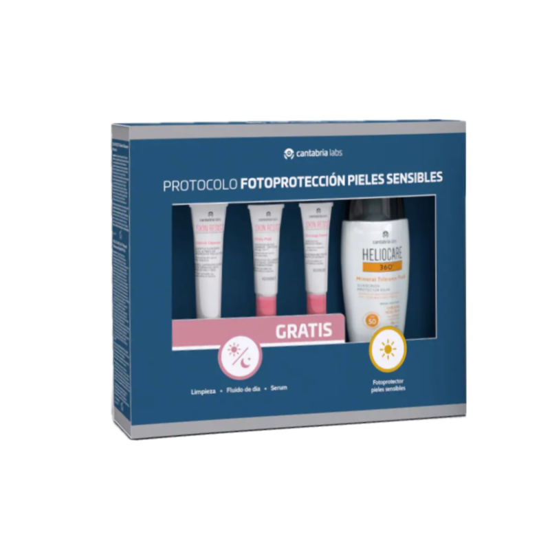 Heliocare Pack 360 º Mineral Tolarance Fluid SPF50 50 ml+ 3 muestras Velvet Cleanser 7 ml + Daily Fluid 5 ml + Sensage Serum 3 ml